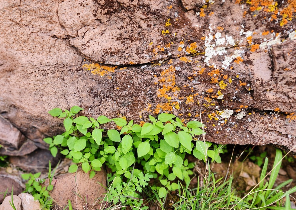 GL says and based on the pictures from swbiodiversity, it's a good possibility as their shots were around this kind of rock as well: Parietaria hespera is a species of flowering plant in the nettle family known by the common name rillita pellitory. It is native to the southwestern United States and northwestern Mexico, where it grows in many types of habitat, from coast to desert, dry to moist, and sometimes in disturbed areas.