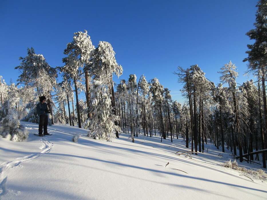 Preston on the Meadow Trail. The best snowshoeing snow and terrain was found on this trail.