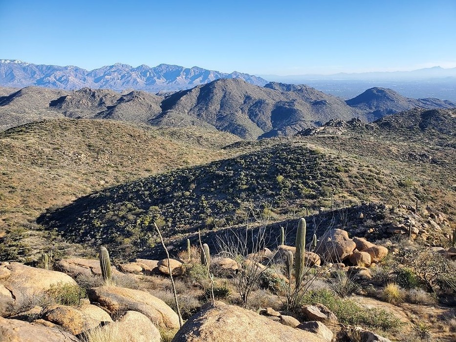 Looking over at Ridge Crest Peak and the Catalinas in the background
