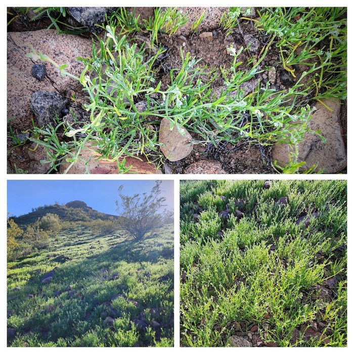 Pectocarya heterocarpa is a species of flowering plant in the borage family known by the common names chuckwalla combseed and mixed-nut pectocarya. It is native to the southwestern United States and northern Mexico, where it grows in desert, mountain and plateau habitat, in scrub, woodland, and open areas.