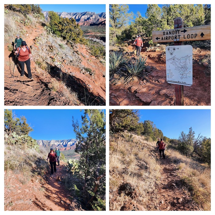 Right photos on the northwest sdie of the hike: at junction where we will head east and coming down from the top of the mesa where we will eventually get into the tree cover area.