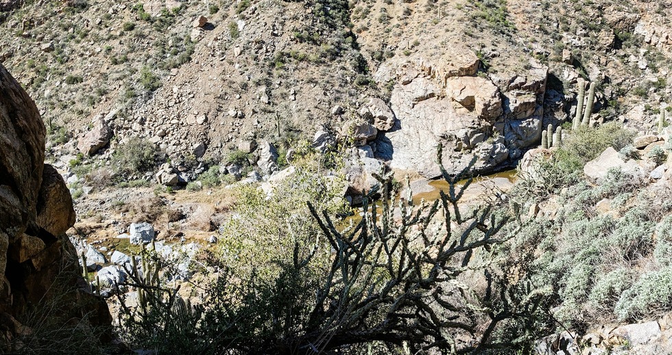 Looking down from turn around point. If the natives used to access the river from that platform above me I'll bet they took a different route.