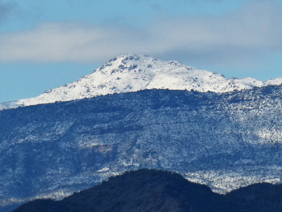 I went to the top of Cave Creek Dam pullout to shoot photos of the snow. A zoom to one of the tallest of the New River Mountains. I don't know its name.