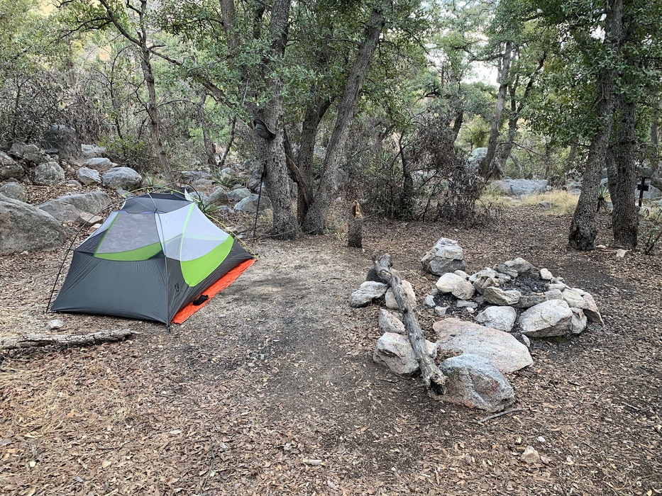 Home sweet home! This is a pretty good campsite though it is right on the trail, and there is a snag that could be an issue in the future. Turns out there are a couple other spots nearby I liked better, but I was too tired to look for them and didn't find them until the next day. Oh well, next time.