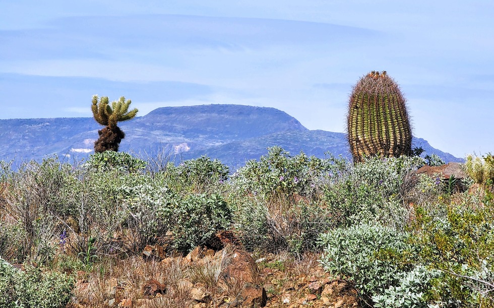 APACHE VISTA TRAIL: framing up the hump (Black Mesa) of New River Mesa.