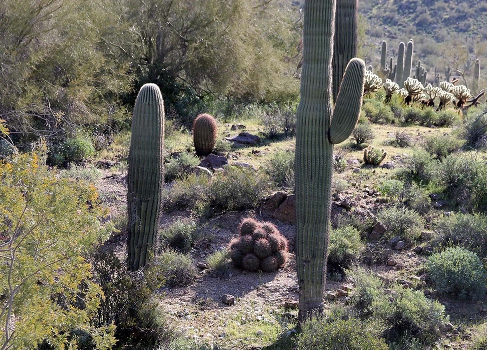 Ferocactus acanthodes, doing a fine E. polycephalus impersonation.