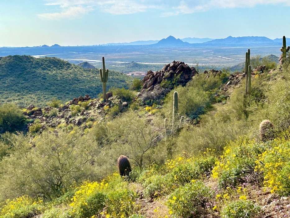 Lower Gidro Trail Scenery hiking uphill. View west to Camelback Mountain and DTPHX!
