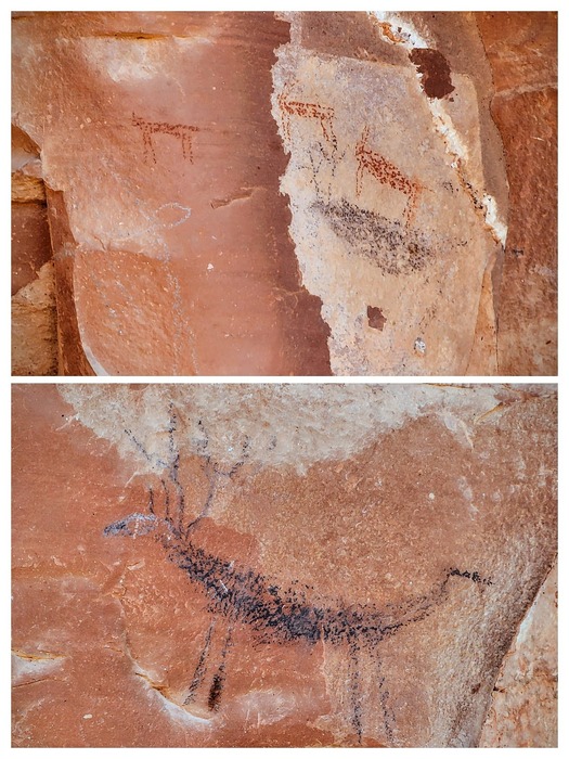 A fine looking elk on the bottom photo but not sure of the critters on top.
