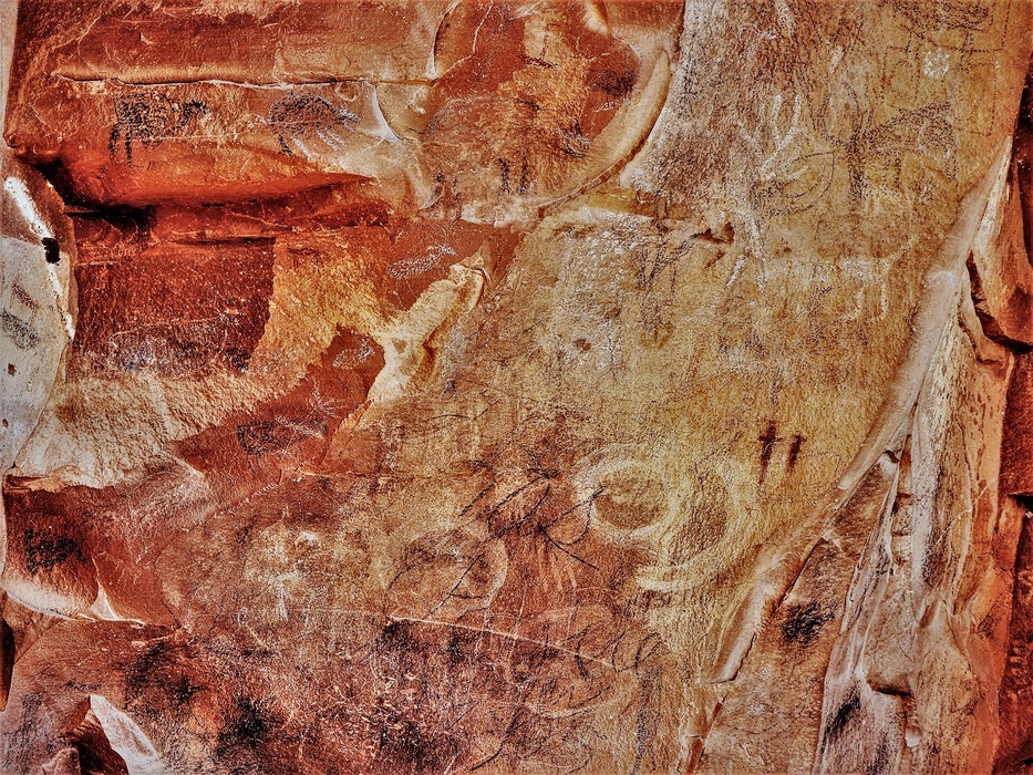 Sinagua Supernova image possibly modified by Apache to Masau mask. CIRCLE AND CRESCENT depicts the alignment of the moon and Venus. Probably done by the Sinagua. It is prevalent with the Puebloans. It is suggested that this scene, which is around the Southwest, depicts the 1054 AD Supernova.