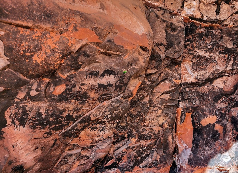 Figure with green pointer is believed to be Sinagua Mother Earth birthing animals.