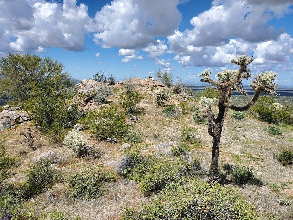 Nice flat area at the very top, not a lot of brush. There's evidence of cattle around this area. They keep it grazed which makes for a better hiking experience.