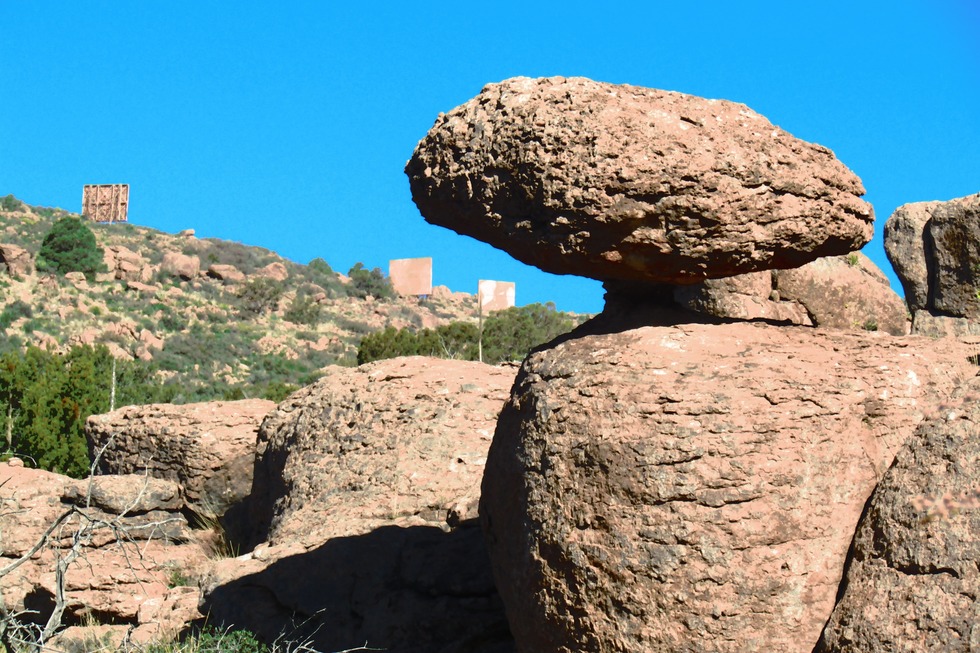 Some unusual landmarks as we walked the road that was passable on an ATV with steep grades up and down. In the past we came in on the mining road directly north of the road going south of highway 60 to the Oak Creek campgrounds. That road is much better for any kind of traffic (foot or street vehicles).