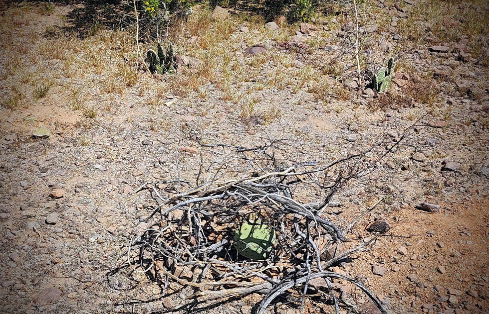 this area is in front of the housing on the north side. There is a stretch in front where the residents are trying to plant some cactus and they use the spare wood to protect the new plantings. There were about 5 of these.
