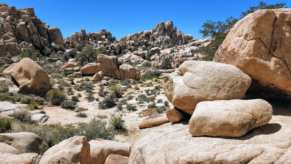 https://geologyistheway.com/blog/2021/0 ... nia-u-s-a/ The granitic rocks of Joshua Tree have monzogranite to granodiorite composition. The age of the granites range from the Jurassic to the Cretaceous (about 200 to 65 million years ago). These granitic rocks originated from the solidification of large volumes of magma at depth during the early history of convergence between the western margin of North America and the Pacific plate (then Farallon plate).