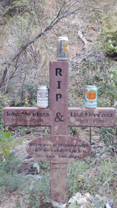 Redneck cemetery. Yes those are full cans of beer. Is this a 'take a beer, leave a beer' situation?