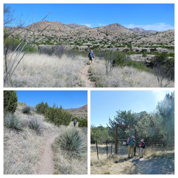 Hiking past the yucca and down into the valley and then through the AZT gate.