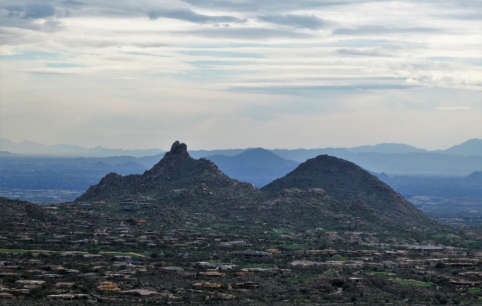 I also liked the clouds. According to Geocache, Pinnacle Peak is “largely composed of granite. The crystallization of slowly cooling molten rock deep in the Earth formed this granite over 1.4 billion years ago. The natural forces of faulting, erosion, and uplifting of overlaying rocks have uncovered this granite.