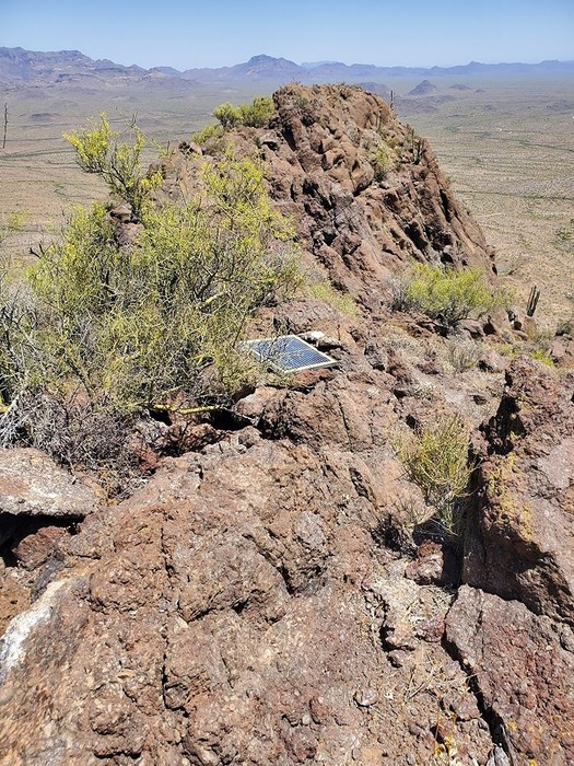 at the peak I found a solar panel, some migrant trash, and 2 US survey markers
