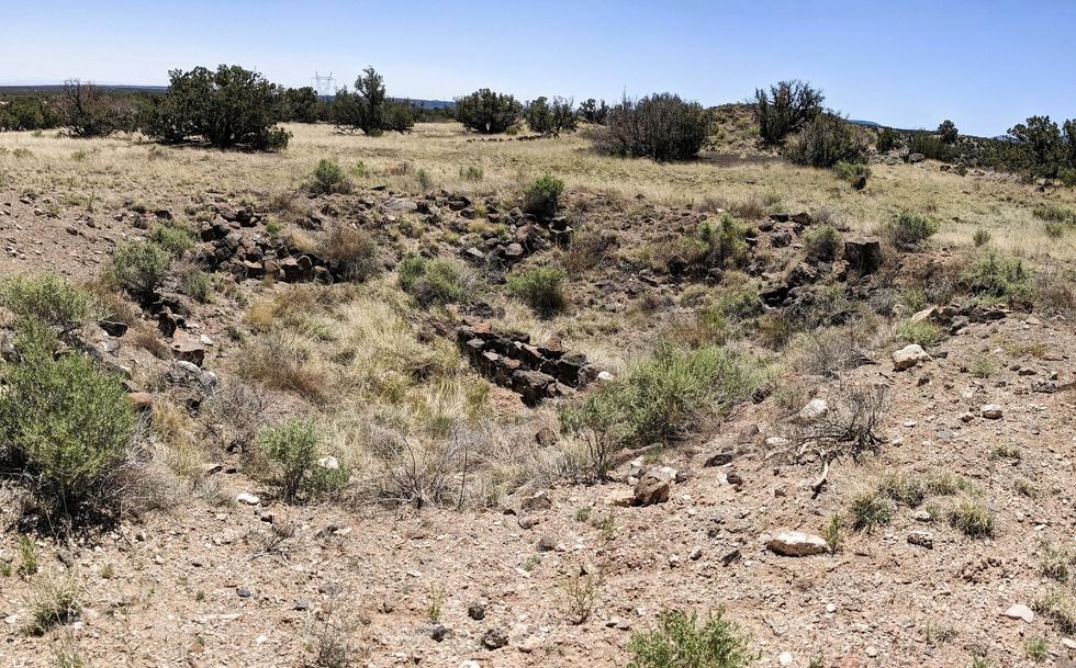 In front of ruin #7 is a big "crater" which I'm guessing is the remains of a kiva. Almost all of the ruins have an unnatural low spot nearby but most are too small/shallow to be convincing, but this one is. Curious stone structure at the center bottom. You can see ruin #6 is very close.