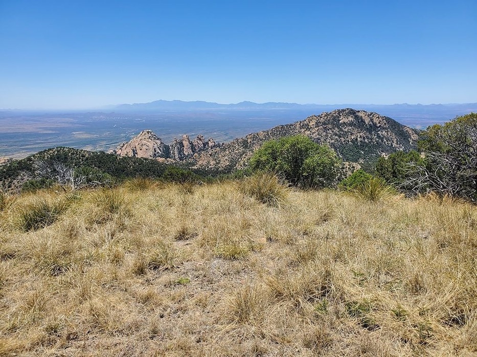 On a flat grassy area near the peak. Looking West/Southwest toward the unique rock formations.