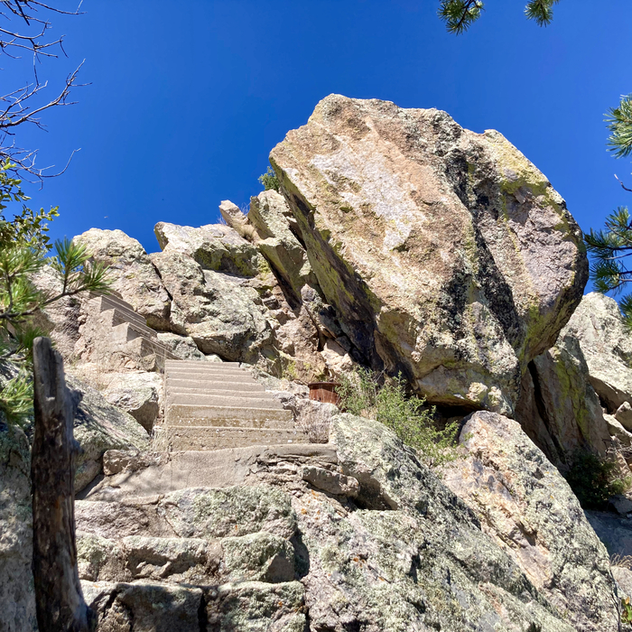 Some original stone steps at the bottom lead to more modern concrete steps above.
