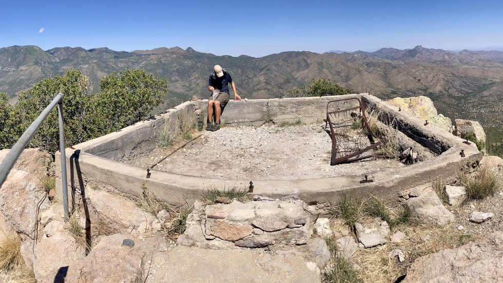 9L checks out the old lookout house foundation.