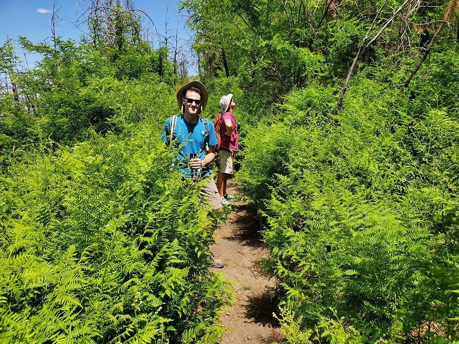Preston and Jim standing in the ferns