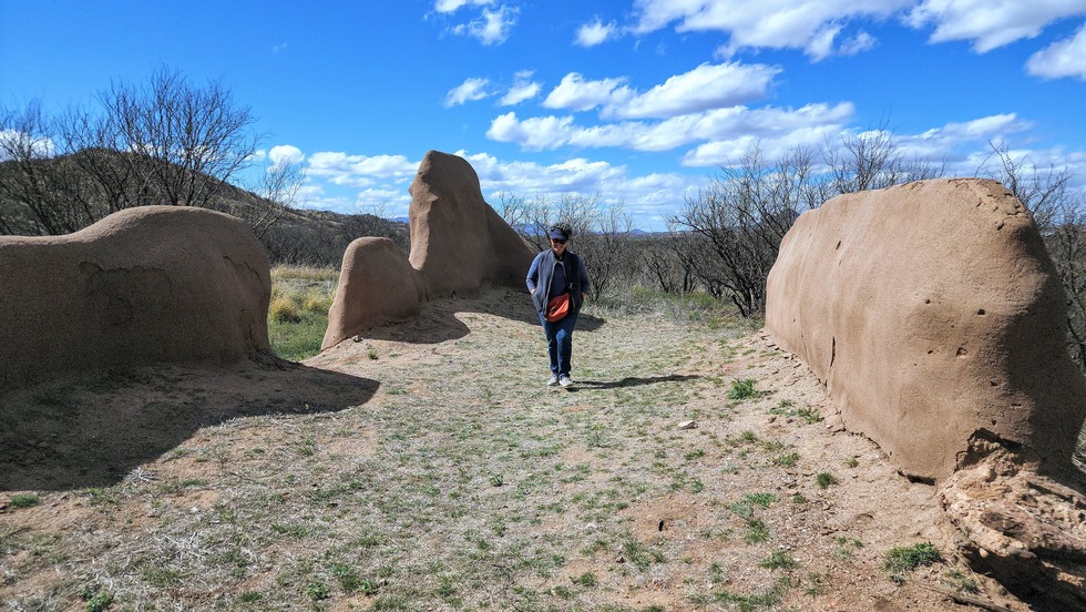 Wendy walking through the church. It really is a shame that this is all that is left. I included the NPS info video in my video (which is short and pretty good I think) and it has pictures of what it used to look like [ youtube video ] . It sure makes you appreciate that we have Tumacacori and San Xavier among other preserved Missions.