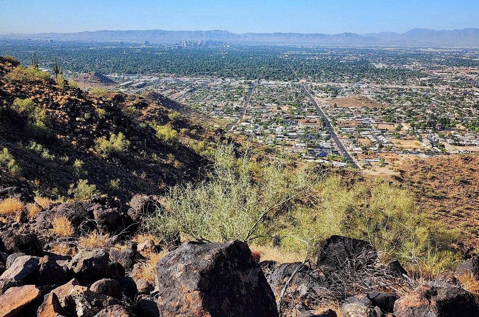 not quite as hazy looking downtown which if it's gonna be hazy, downtown would not be as visible. Interesting how many trees you see the closer you get to downtown; perhaps just the angle.