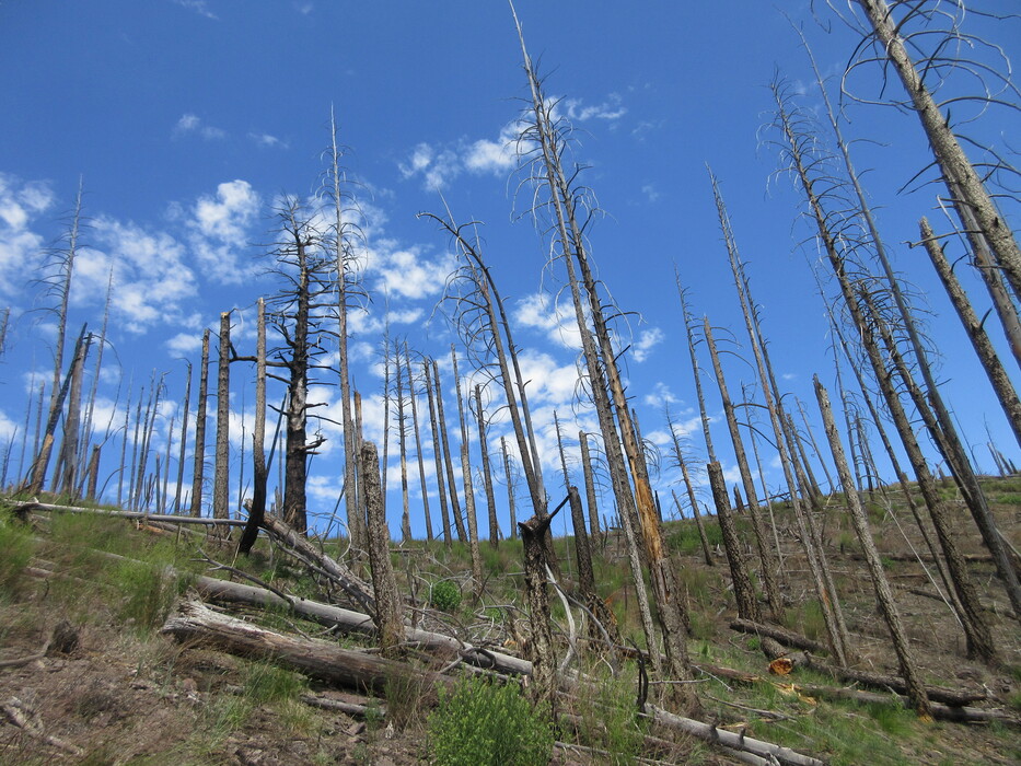 Lots of the hike looks like this. Evidence of the old forest that took fire every few years, and the new forest that ended from a single hot fire.