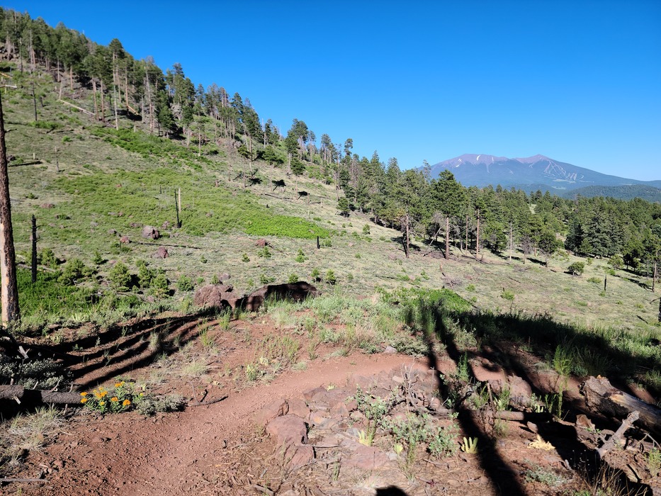 Humphreys still has a hint of snow in the upper west ravines in July. The flower in the lower-left is the next photo.