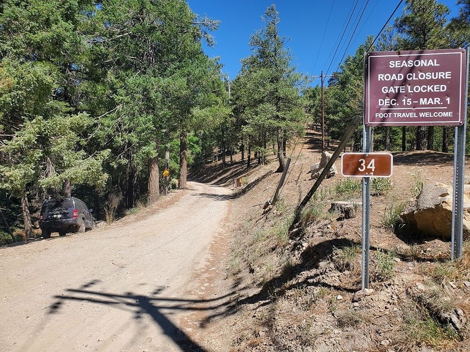 a trail leads down from the road to the left here