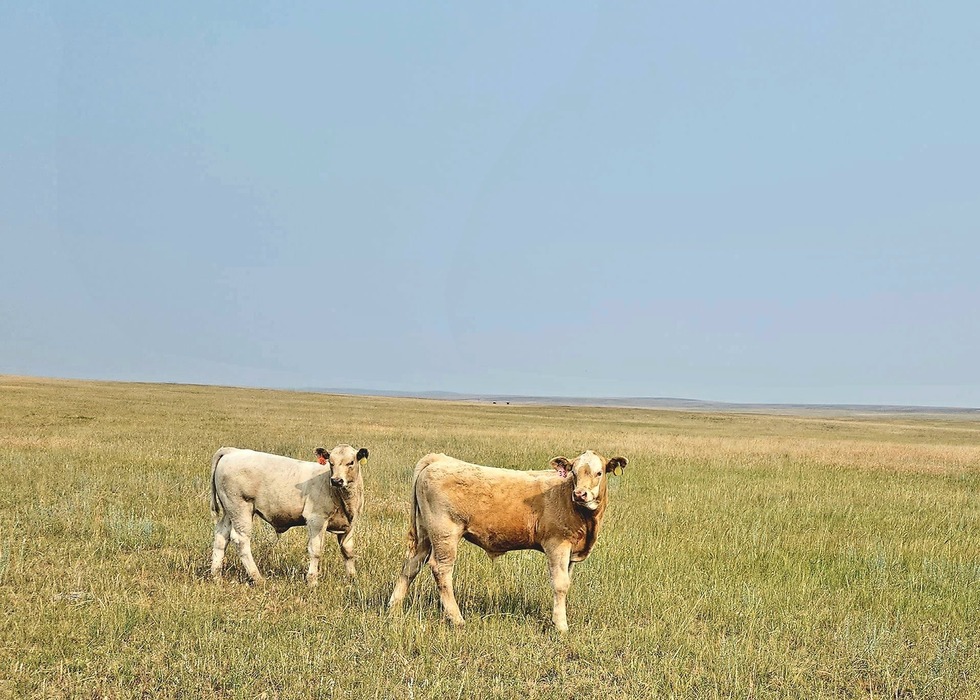 the calves were looking very healthy. Brian raises Charolais. This is on the leased land where the grass was long and plentiful and green vs last year's near drought conditions.