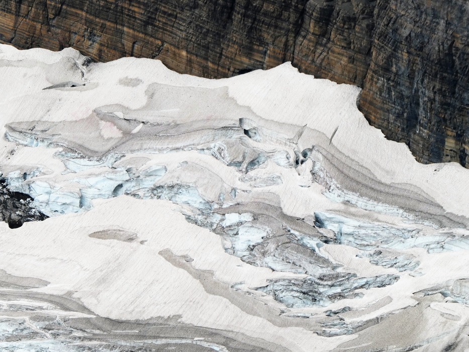 An up-close zoom of Grinnell Glacier. This is below Mount Gould.