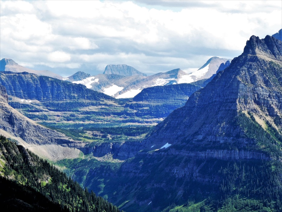 Looking toward Logan Pass and beyond zooming to Jackson Glacier; altho if you asked me which bank of snow was the glacier, I couldn't tell you.