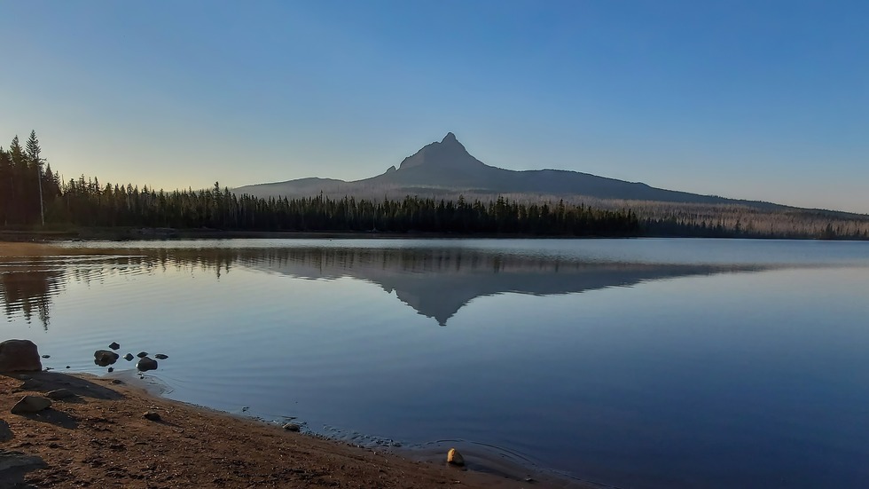 Mt Washinton reflected in Big Lake from the beach in front of my campsite.