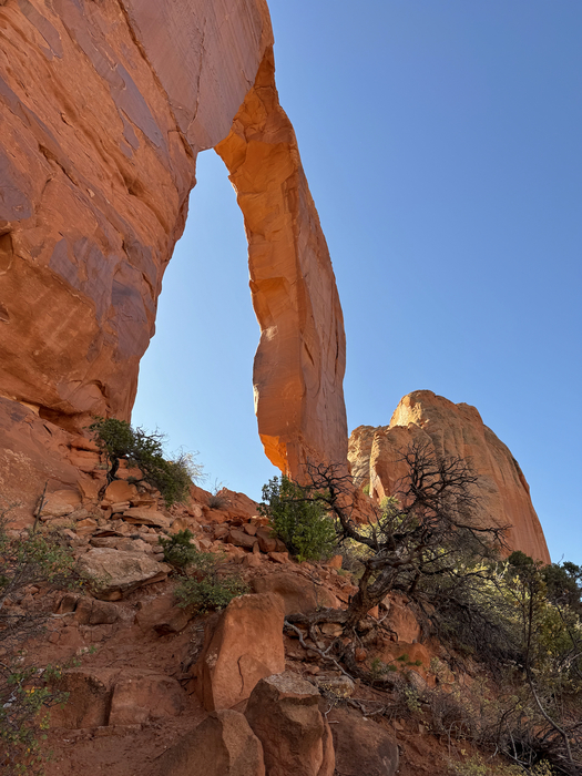 I made the scrambly loose climb up to the arch from my eclipse view spot below.