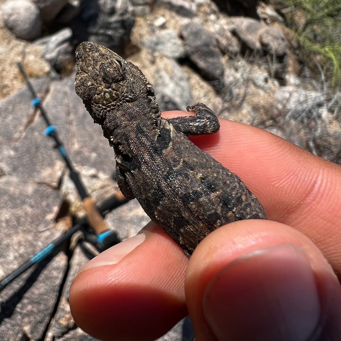 While skirting around the southeastern edge of the mountain to access the wash that affords access to it from the south, I encountered many of these ornate tree lizards basking. Catching them was a fun challenge, and the males' breeding colors were in full display.