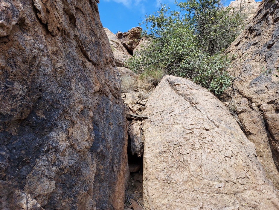 the weakness in the cliff band that I climbed up (and back down)