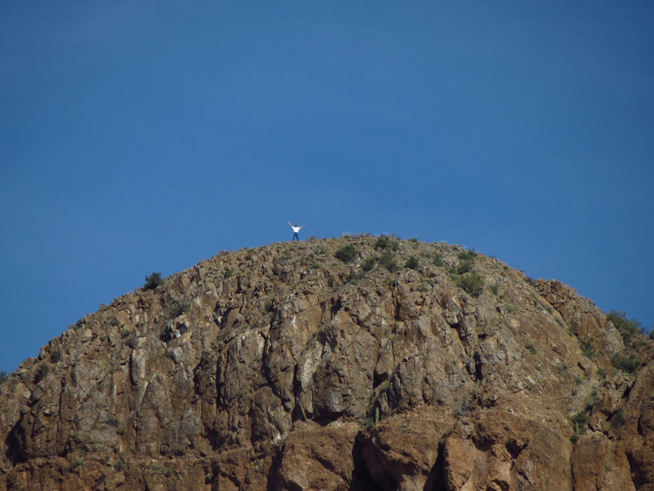 Summit photo courtesy of my dad. He wanted to head out with me on this day to see the area. I was actually taking with him from the summit with a hand held radio. That was cool. This photo was taken from the TH campsite approximately one mile away. The photo was taken with a new Canon SX40 at full optical x35 zoom resting on a sand bag with zero post processing.