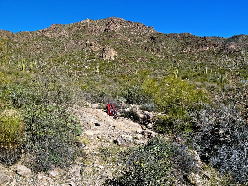 Azimuth Mark to right of backpack.