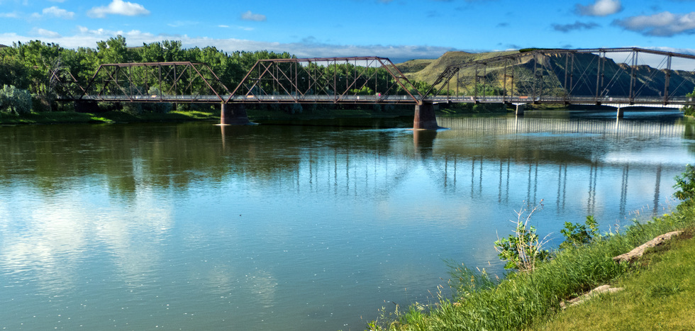 Looking at the old bridge "Fort Benton Bridge" across the Missouri River. It was the first bridge to cross the Missouri River in Montana. I drove across it back in the day. Now it's a pedestrian bridge.