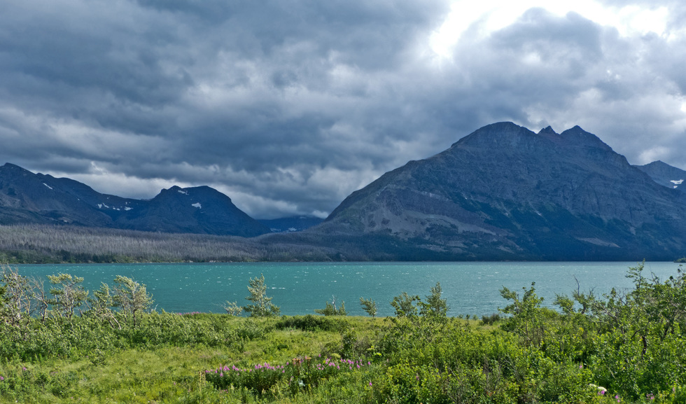 still slowly making my way to St Mary. You can see Mahtotopa on the far right with Red Eagle in the front. You can also see the burn area of the 2006 Red Eagle fire. I think the other mountain might be Curly Bear to the left of Red Eagle but I have yet to figure these out. I think the center is Curly Bear. A lot clearer than yesterday morning: http://hikearizona.com/photo-E.php