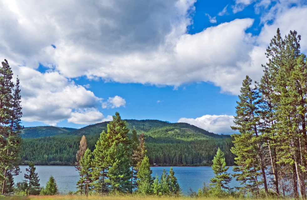 another lake along the highway. These could be one of the Thompson Lakes as there are about 6 lakes in a row and I took a picture of the Logan State Parks sign a minute later. So it's probably the Middle Lake. We're about 44 miles from Libby heading NW.