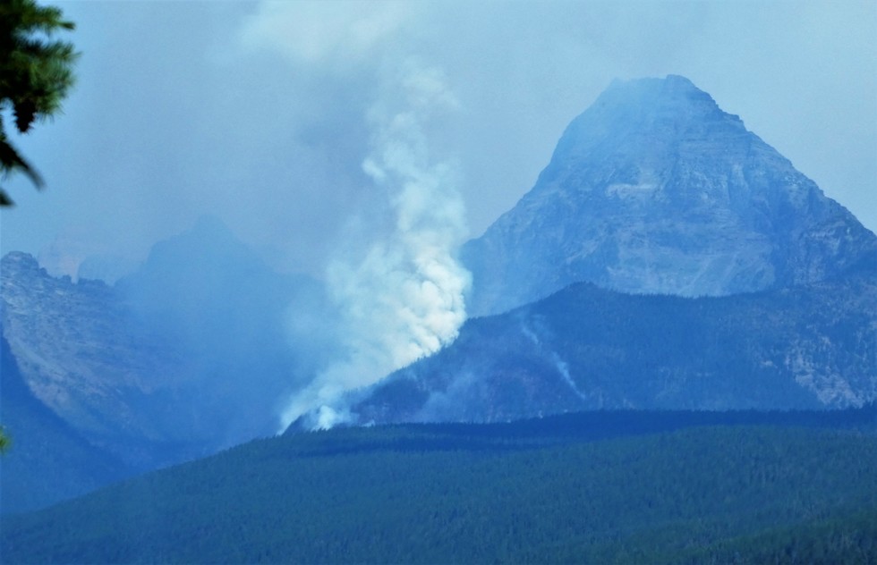 When we got to Lake McDonald to check out the rental place we got to see the Sprague Fire along Snider Ridge below Edwards. You can see Little Mattherhorn to the left which is above Avalanche Lake. It started the nite we were up at Boulder Pass campground (Aug 10th) when it blew through with such a fury. This is the fire that would take out the Sperry Chalet on August 31st: missoulian.com/news ... html