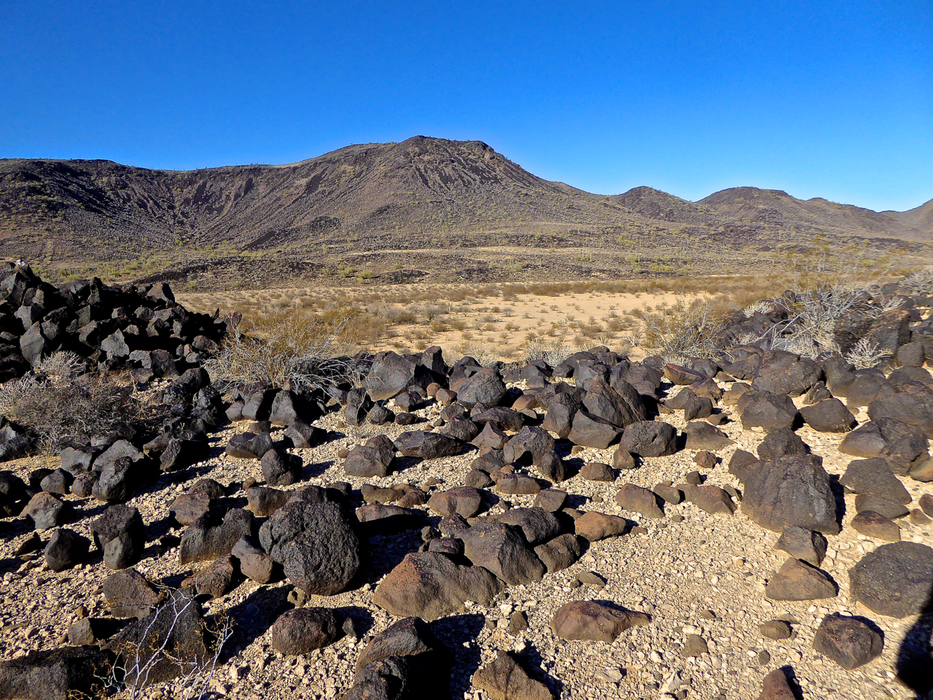 Crossing large rocks - Hiking to the next set of rocks near the mountain, to search for the azimuth mark.
