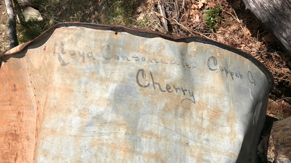I don't think I had previously seen this old tank in the drainage below Aspen Spring. I don't do this kind of research unless I'm in the office. But I might have to look into it more next week. I assume Cherry is the old town in Yavapai County. But who knows.