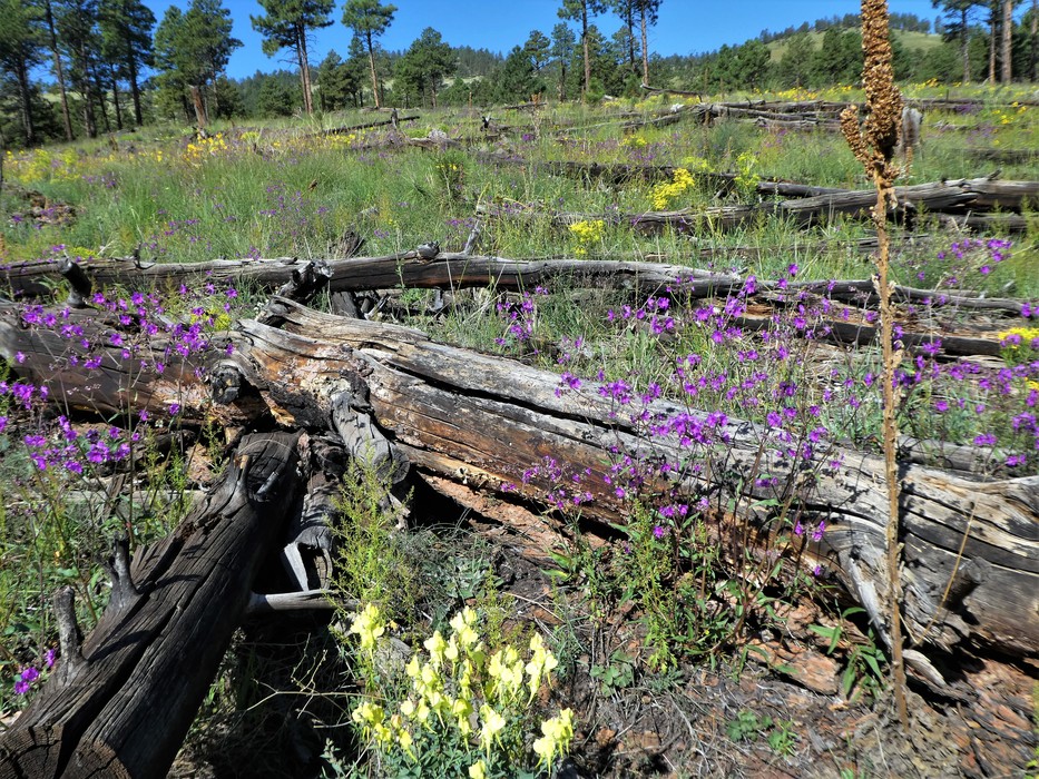 This is the little area that Ambika counted 15 different kinds of flowers. Wish I had a better picture of the yellow flower in front. The yellow bushy flora in the back is Snakeweed. I think the purple/pink flower is Spreading Four O'Clock. It's just that it's standing and that's what's throwing me off but it can grow to be many feet tall. Update: I think the Spreading Four O'Clock is Mountain Four O'Clock http://www.polyploid.net/swplants/pages ... s_alb.html but am still researching. This looks good: or Mirabilis albida (Walter) Heimerl