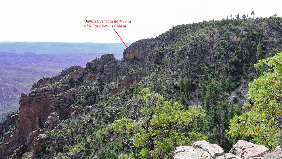 Two days before our planned hike to the Devil's Eye I was exploring the south rim of the North Fork of Devil's Chasm and reached a viewpoint where the north side of the Devil's eye was visible. This confirmed that the window did go all the way through and had not been an illusion.
