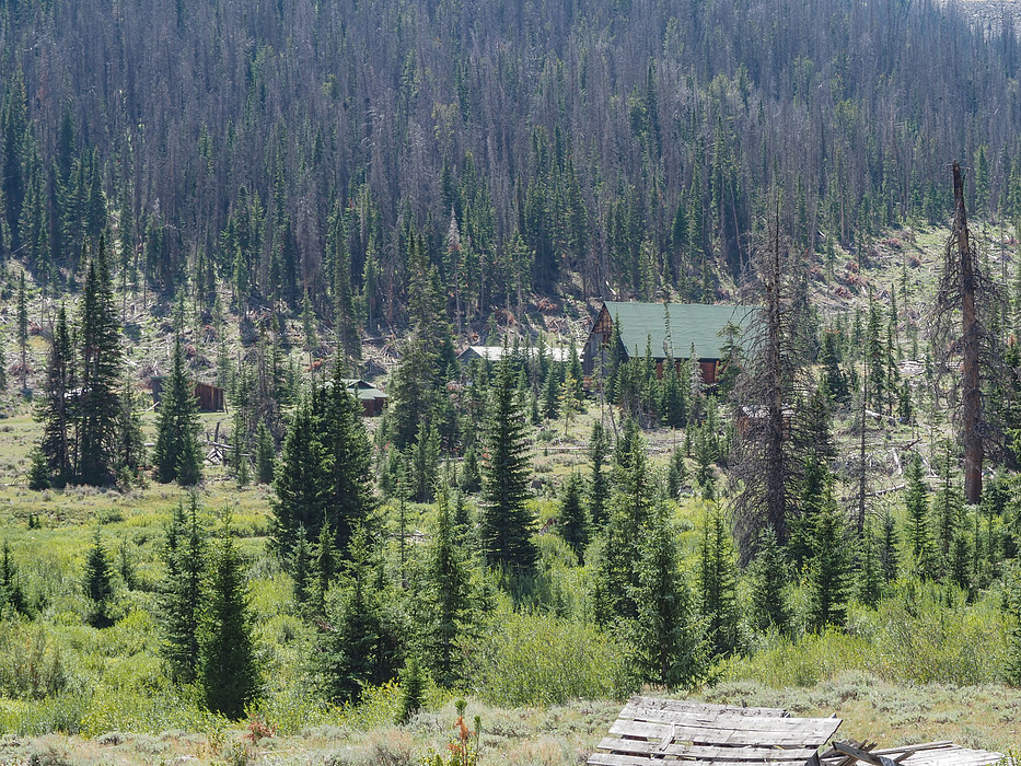 Some of the remaining buildings at the old abandoned Kirwin mining town. Some of the buildings are being restored or at least maintained by a volunteer group. About 200 people lived here at its peak in 1904. But the gold mines never proved to be profitable and the town died by about 1914. See photo #10 for a timeline of the history of the town.